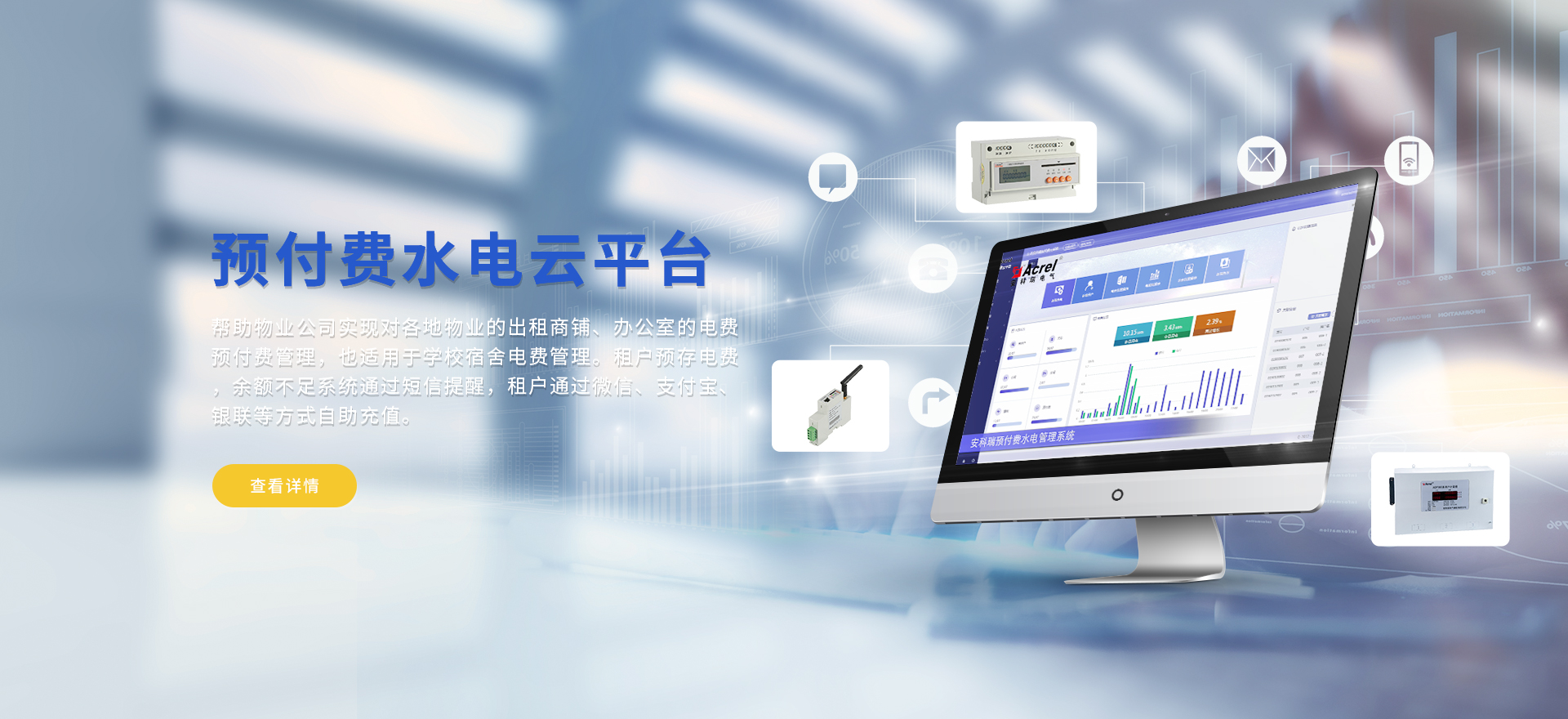 安科瑞提供的解決方案包括Acrel-EIoT能源物聯網云平臺、變電所運維云平臺安全用電管理云平臺環保用電監管云平臺、智慧消防云平臺、能源管理云平臺、工業企業能源管控平臺、遠程預付費云平臺、餐飲油煙監管云平臺電動汽車/電瓶車充電樁收費管理云平臺、電力監控/無線測溫系統、電能質量治理系統、電氣火災監控系統、消防設備電源監控系統防火門監控系統、應急照明和疏散指示系統、智能照明控制系統、醫用隔離電源絕緣監測系統等,幫助用戶實現能源智能化、可視化、精細化管理,提高用能效率和用能安全,為企業節能降耗和實現能源數字化建設提供數據服務。